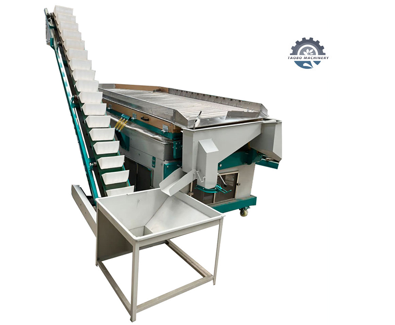 The screen plate vibrates directionally, pushing the stones upwards along the slope, while the grains flow downwards, completing the separation of grains and stones.