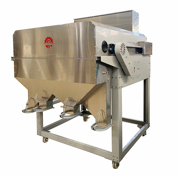 Principle: The fan inside the equipment generates a stable airflow. Soybeans (high density) settle quickly in the airflow and fall into the discharge port; light impurities (low density) are carried away by the airflow and enter the impurity collection bag, preventing “mixing of light impurities with soybeans”.